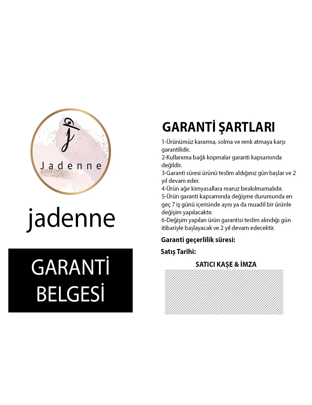 - Jadenne.com'dan satın aldığınız ürünleri teslim tarihinden itibaren 30 gün içerisinde iade ve değişim işlemlerini gerçekleştirebilirsiniz.